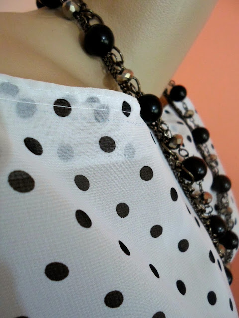 Comprei outros tecidos mas inicio mostrando um branquinho de poás pretos bem levinho, solto, meio transparente, ideal para o verão.