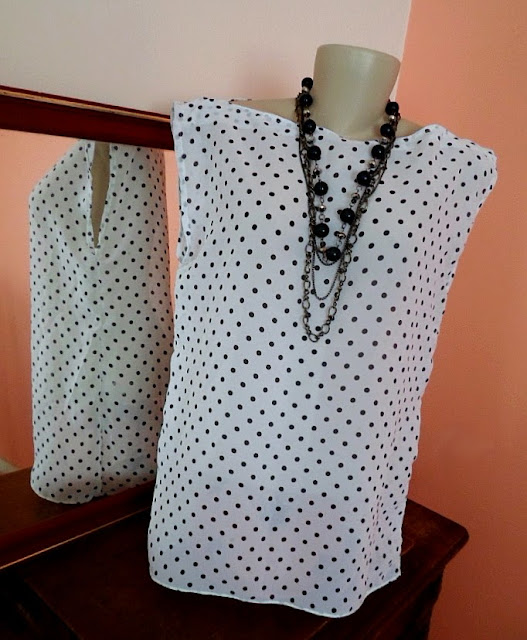 Comprei outros tecidos mas inicio mostrando um branquinho de poás pretos bem levinho, solto, meio transparente, ideal para o verão.