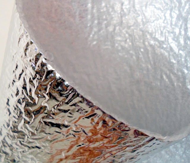 A parte externa é feita com tecido de algodão e na parte interna usei o Etaflon (laminado prata) também conhecido como: